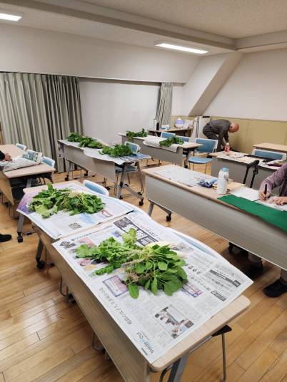 | 内容: ・がやがや館の4階-C会議室 ・一人一卓で各自のテーマにて、 ・何時もの様に、内藤農園から 大根、ほうれん草 ・慰労会は池尻大橋駅近くの中華 C-MEN-HANへ。今回は7名参加、 ・もぐもぐタイム; ひと本石田屋(栗饅頭)、鬼ひび(岩塚製菓)、、シュガーバターサンド(グレープストーン銀のぶどう) |