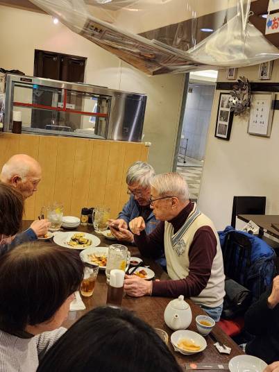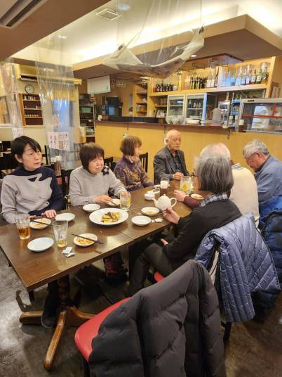 | 書道教室場所: せたがや がやがや会館 3階A会議室 10:00~16:40 参加者: 高木、関岡、尾崎、伊藤、瀬尾、内藤、山本 (懇親会のみ参加)、菅野 鈴木さんは会議室まで来たが転倒の大事を取って帰宅 |