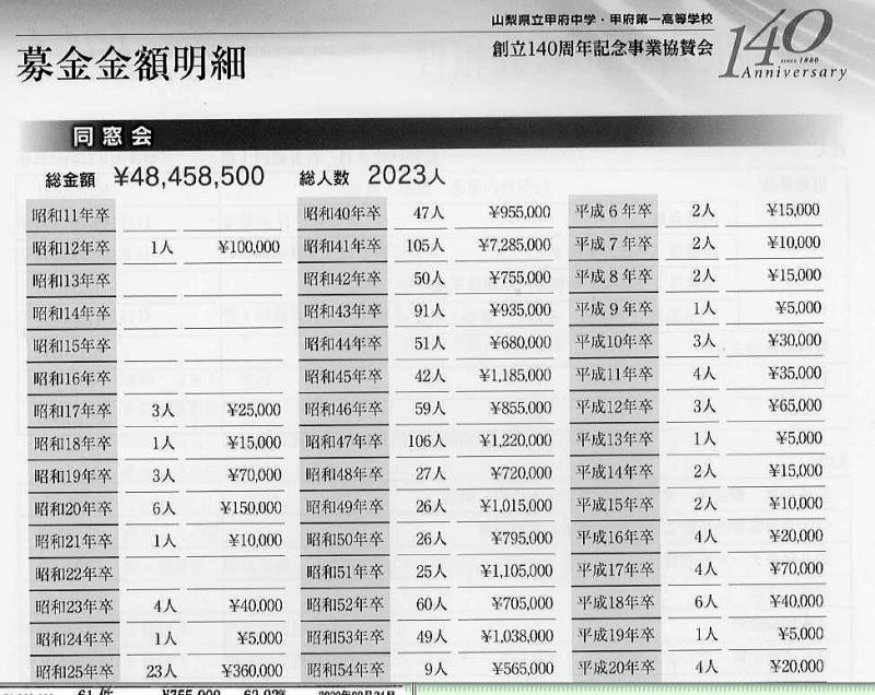 140周年記念事業協賛会から最終報告が2021年5月末に、記念誌とともに、寄付頂いた方に送付されました。