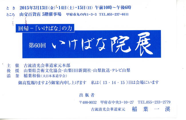 稲葉一渓(12組・稲葉一俊)さんがいけばな院展が(3月13~15日)開催されます