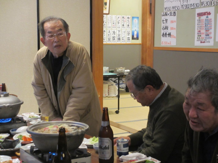 2016年9月23日担任の秋山91歳で亡くなられました。ご冥福をお祈りします。 黙祷をささげてから、新年会を始めました。