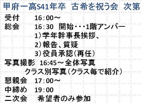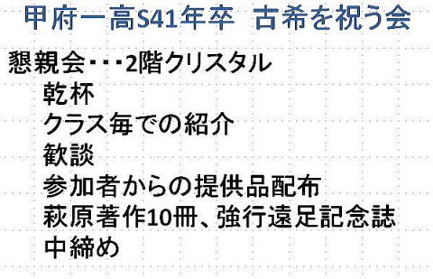 甲府一高S41年卒 同期会 「古希を祝う会」