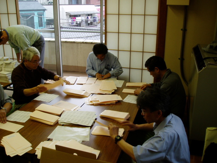 2004年7月17日 東京同窓会終了後の住所録発送作業(神宮前区民会館)と反省会