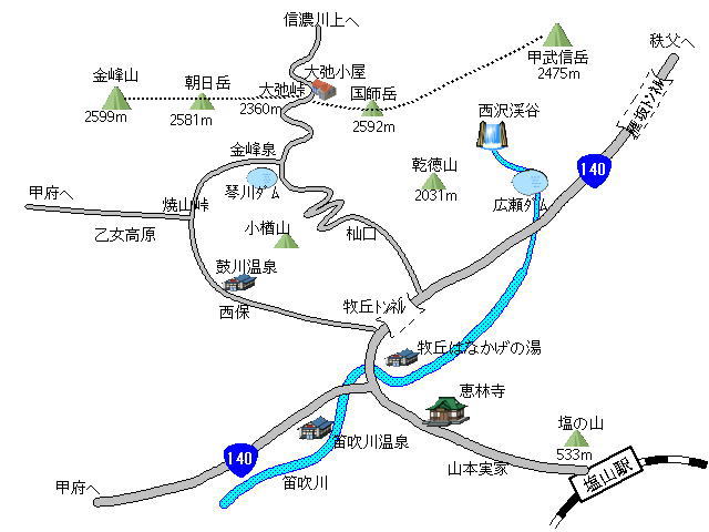 | 牧丘トンネル | 9:50 | 国道140号牧丘トンネルを出たところで、杣口方面左折 牧丘町西保・・焼山峠経由の道は通行止め |