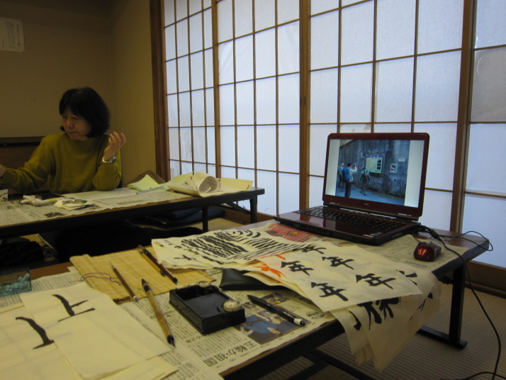 ・パソコンでDVD書道入門を見て筆遣いなどを学習しました。