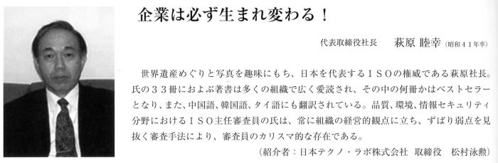 H23年 東京同窓会会誌 31ページに紹介されました。ISOならおまかせです。