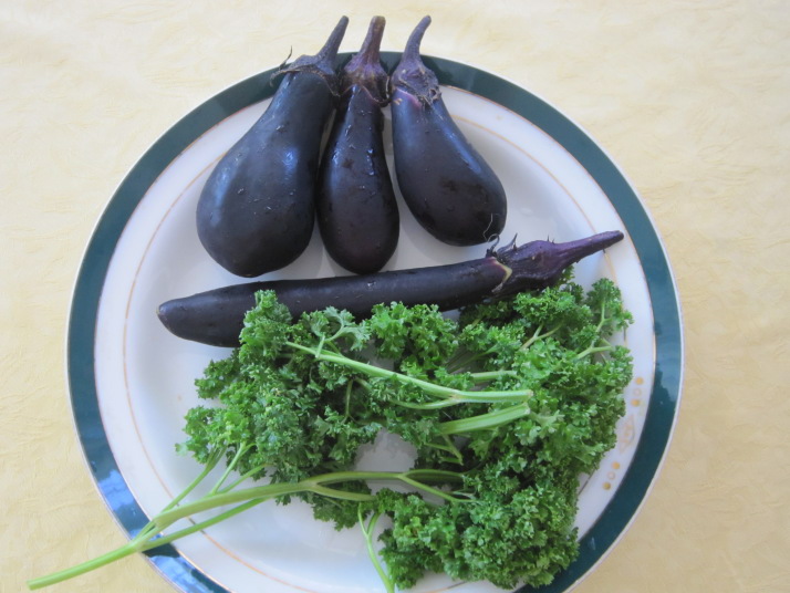 ・今回も内藤農園より、採れたての、トルコいんげんとナス、パセリ。おすすめのレシピはナス・いんげんカレー。