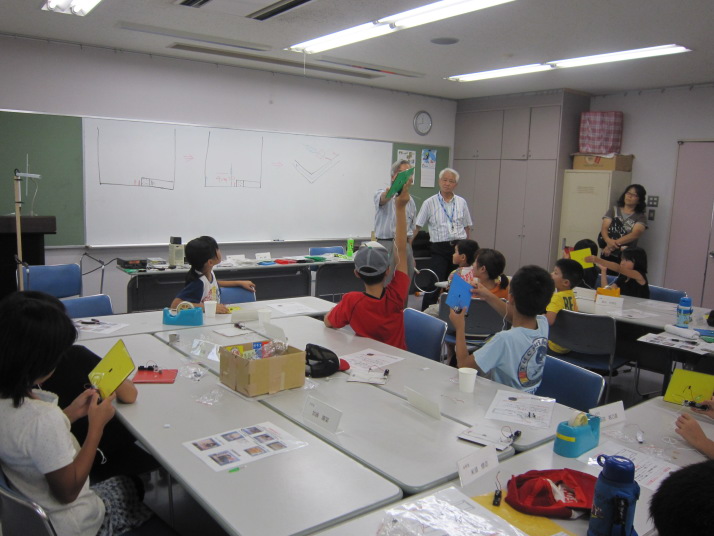 今回は、風間省二さん(8組)が館長をしている、鶴見区の市場小学校コミュニティハウスで夏休み工作教室として、