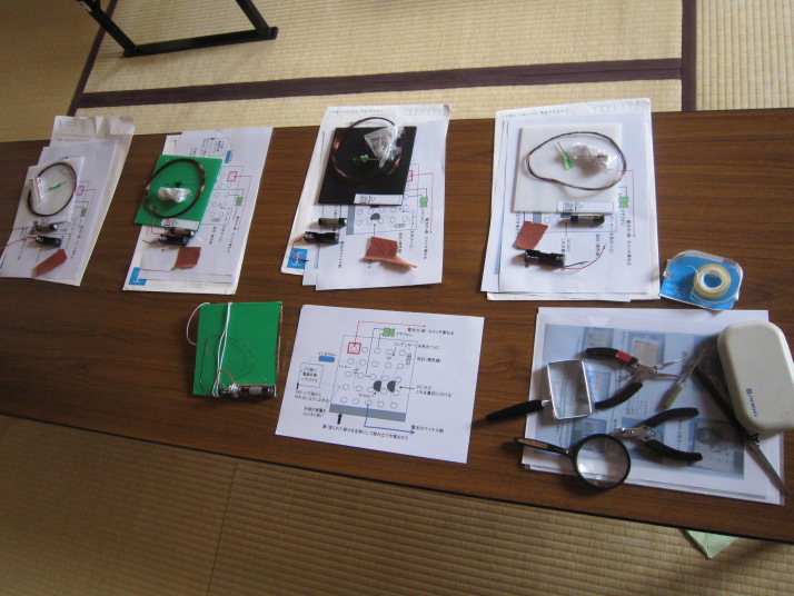 ラジオ制作教室の模様 は師範代が忙しくて、 撮影のひまが無く、皆 さんの小さな部品との 格闘の様子はありま せん。 |