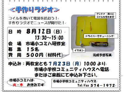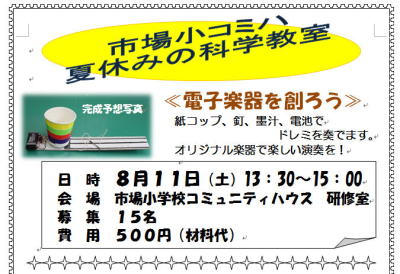 昨年8月に、風間省二さん(8組)が館長をしている、鶴見区の市場小学校コミュニティハウスで夏休み工作教室として