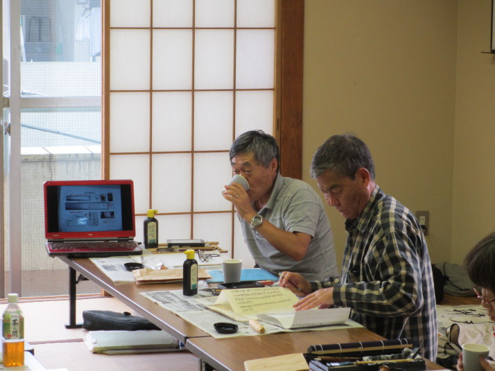 ・午前中は講義と基礎の筆使いをみっちりと。まず一、二、三、横画、縦画、稜角、背稜角・・・・・・