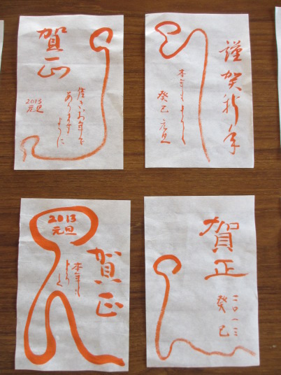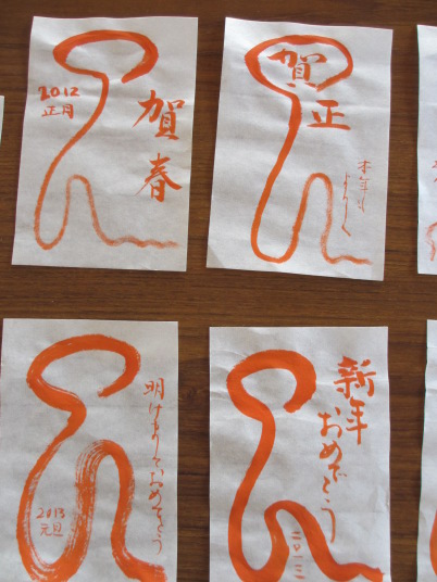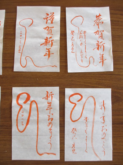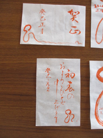 ・師匠から年賀状のお手本をいただきました。また書初め用の文字も選んで練習