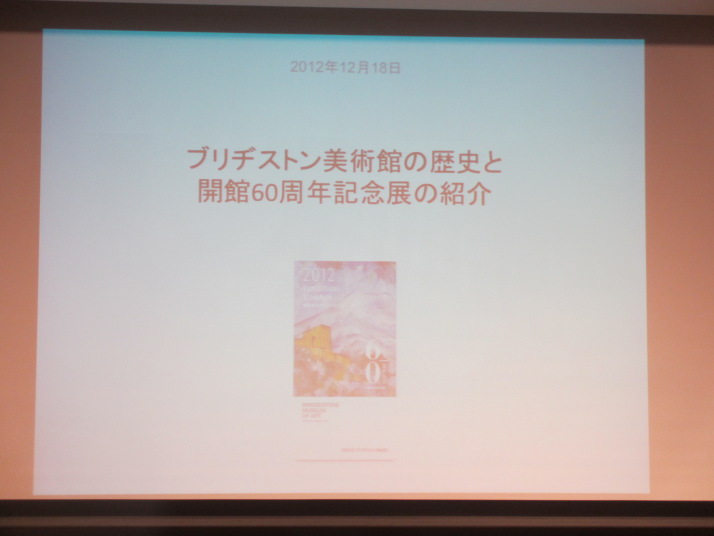 講師:ブリジストン美術館館長 島田紀夫さん・・・・・当日急用で、学芸員賀川さんが代行