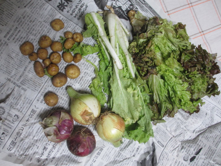 ・内藤農園からのトラクターで潰される前に収穫した、貴重な朝取り産地直送野菜をいただきました。