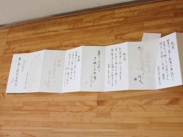 内容: ・今回は小筆の習字でした。各自今まで詠んだ俳句を書き、句帳を作りました。