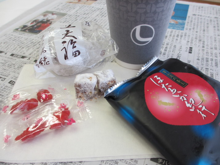 ・コーヒーブレイクではいつもの豆大福の他に瀬尾さんからほたるいか紀行、山本よりトルコ土産ロクムと高木先生の酸っぱいおひねり。