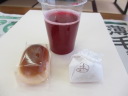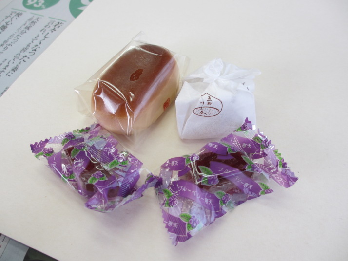 瀬尾さんから 内藤農園の紫蘇を原料で作ったしそドリンクとブルーベリー寒天ゼリー 鈴木さんから 近江八幡 たねや 栗饅頭
