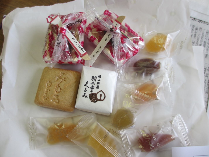 ドリップコーヒーを高木先生から、瀬尾さんから勝山銘菓羽二重くるみ、小林さんからは白玉屋の最中みむろ、山本は信玄餅