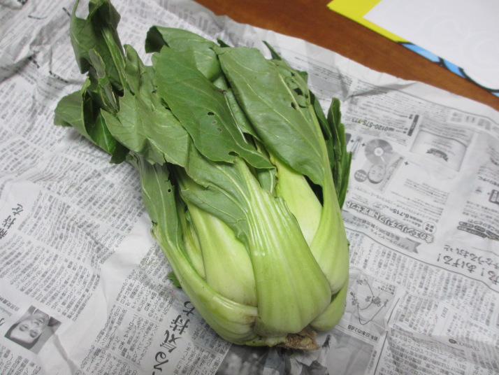 ・内藤農園からは取れたての水菜と?巨大青梗菜をいただきました。