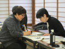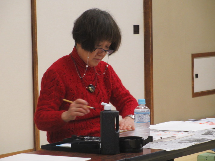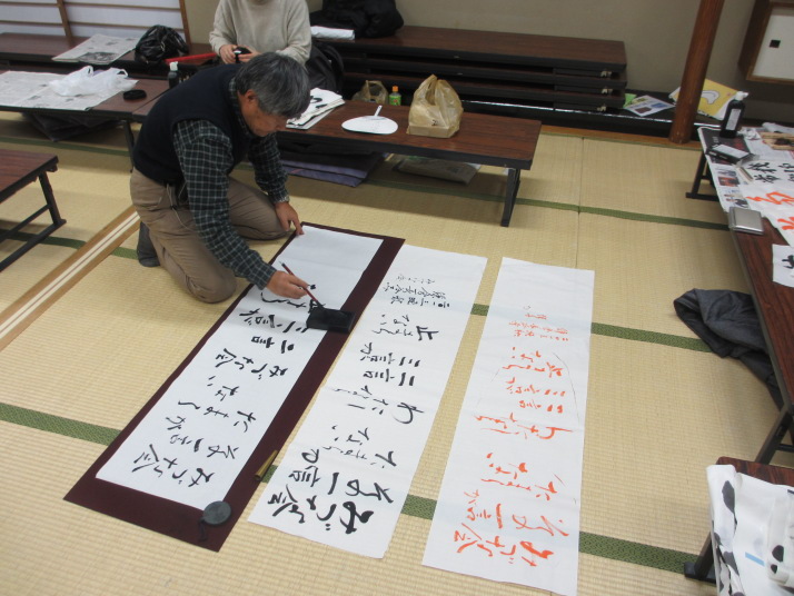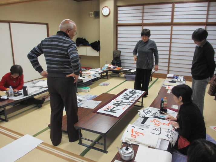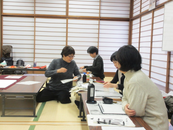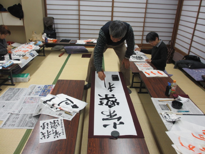 ・本年の行事もこれが最後。各自の課題と新年の書初めの字句の選択と予備練習を行いました。