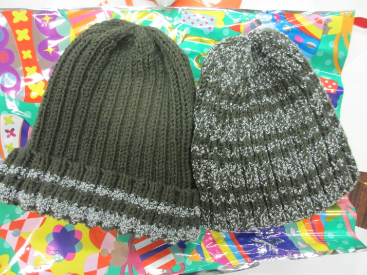 ・内藤さんに、尾崎さんから手編みの素敵なペアの帽子のプレゼントがありました。