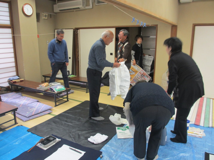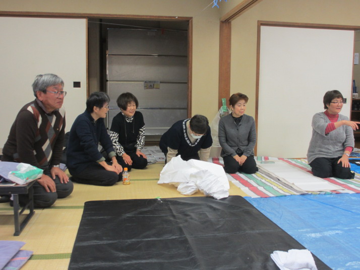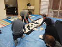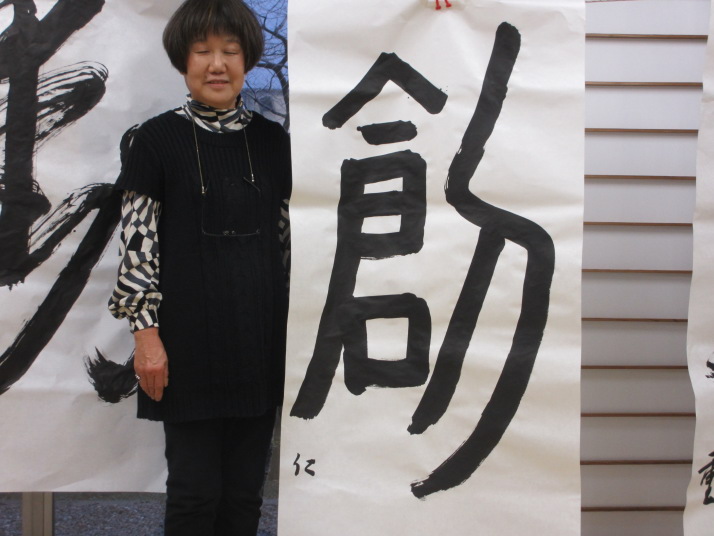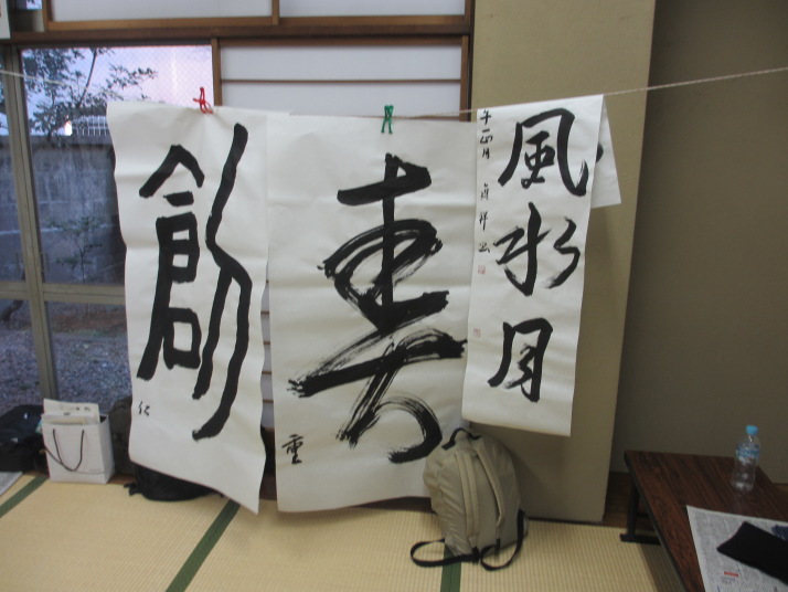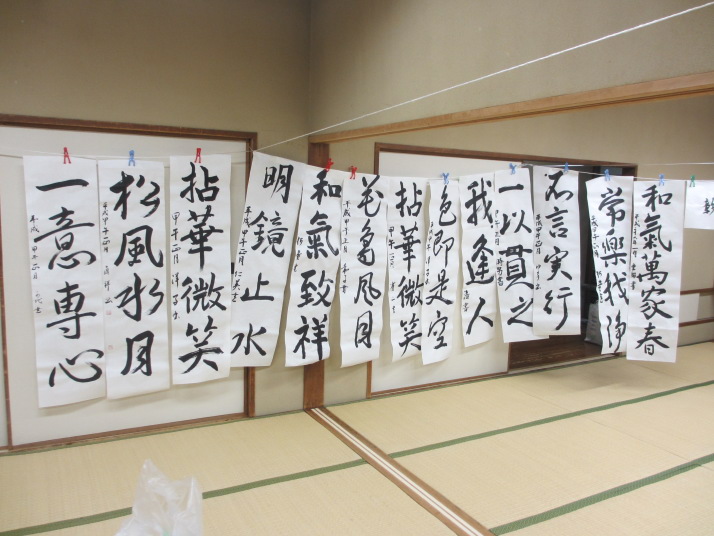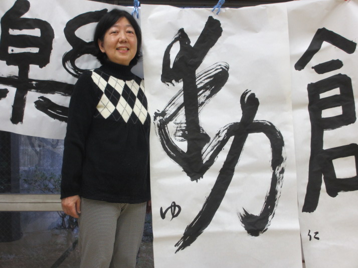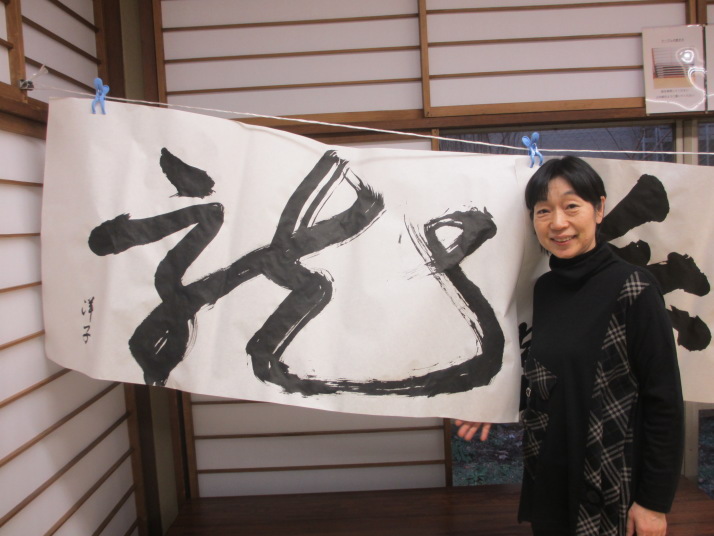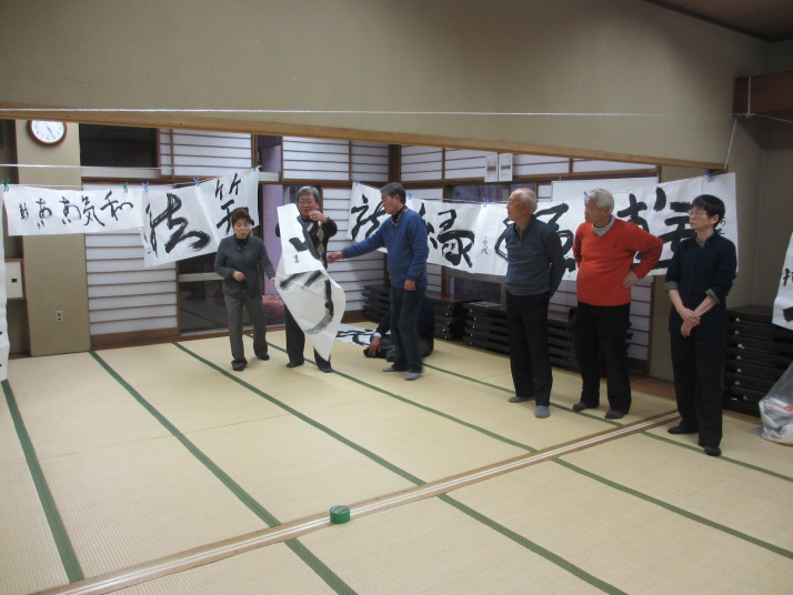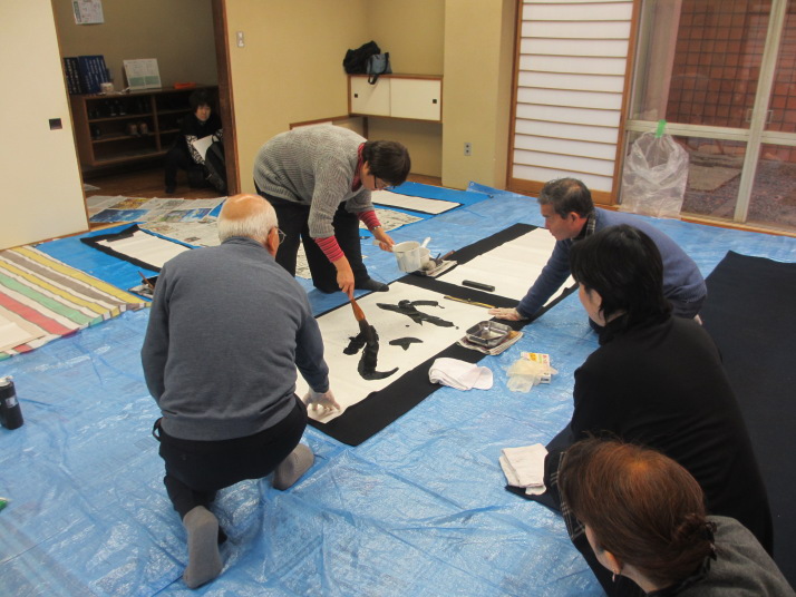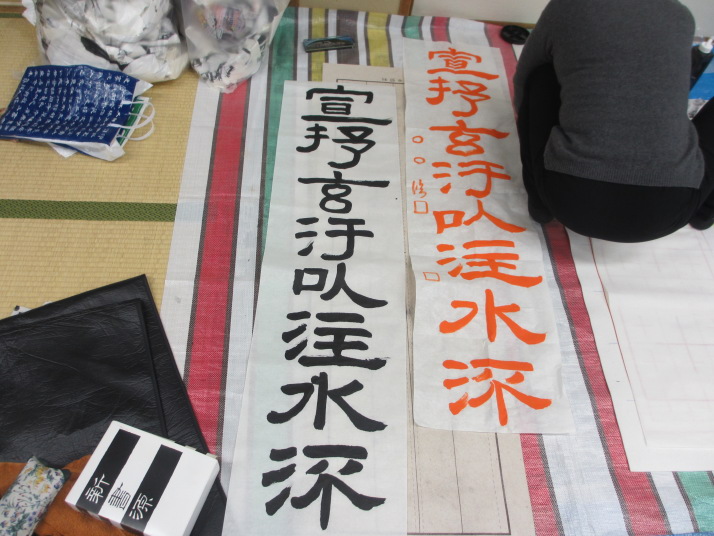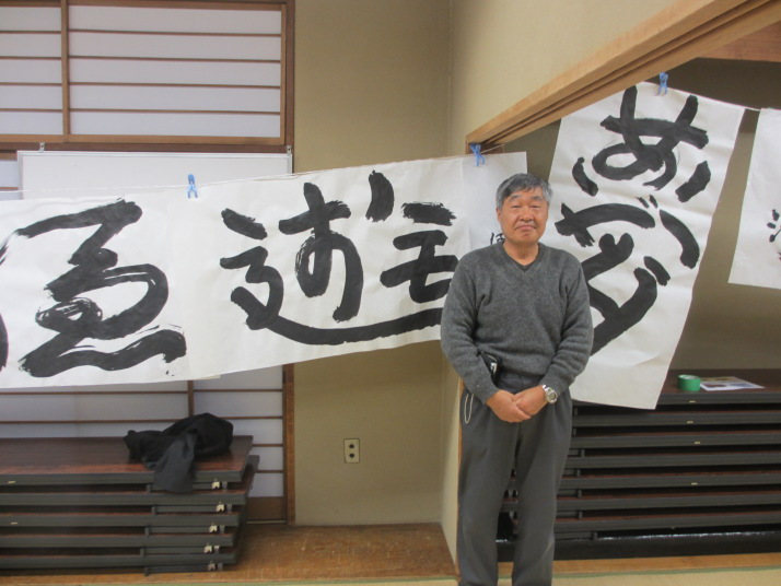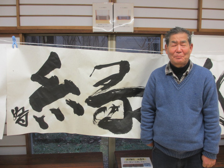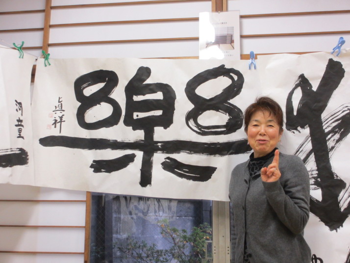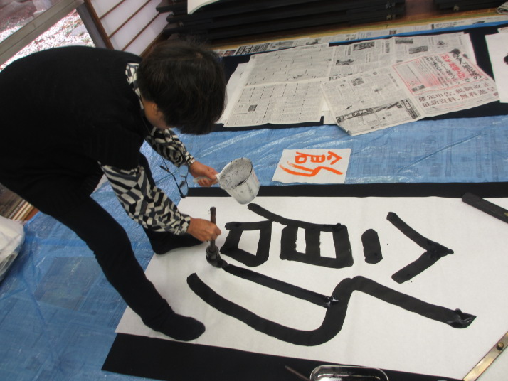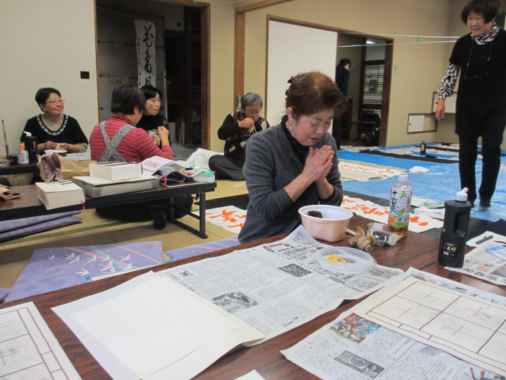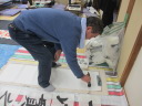 ・2014年のだ一回目は、全紙を使い大筆で書初め。18畳の部屋にシートを敷き詰めて、6人が同時に大きな紙に書ける広さでした。