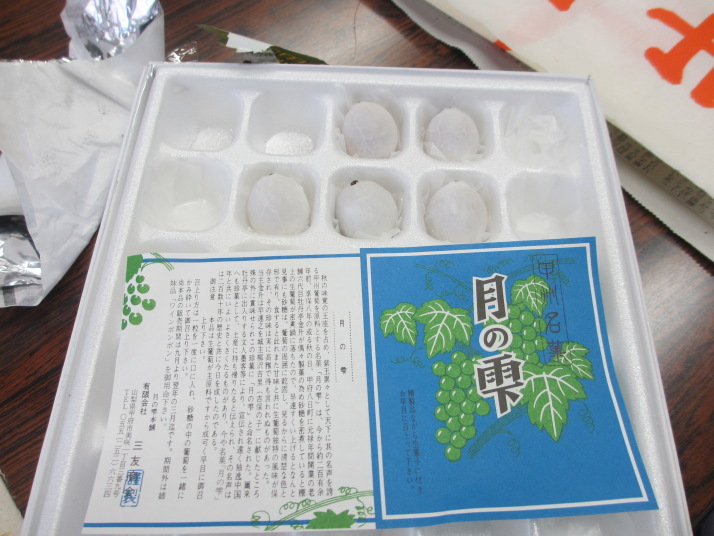 ・コーヒーブレイクはセブンイレブンの入れたてコーヒーと、ひと本・石田屋の繰饅頭と月の雫(甲州の銘菓)。