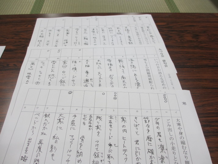 ・俳句会は季節に合わせ、春3月、夏6月、秋9月、冬12月に実施することとしました。。