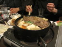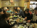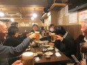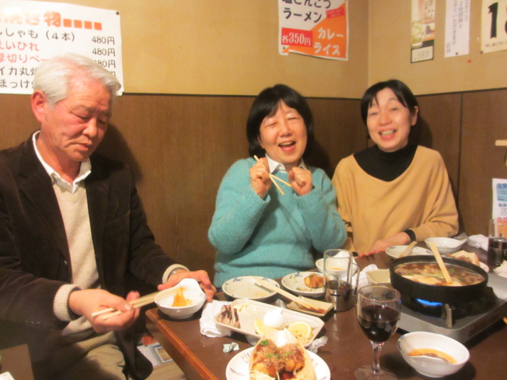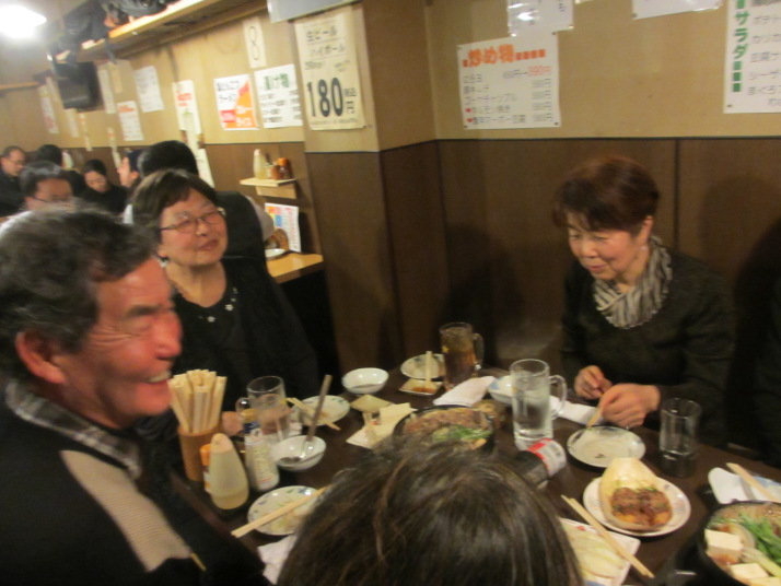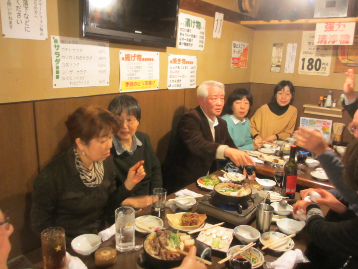 ・反省会はいつもの「ゆかり」。鈴木さんの誕生日を牛鍋他で、にぎやかに祝いました。