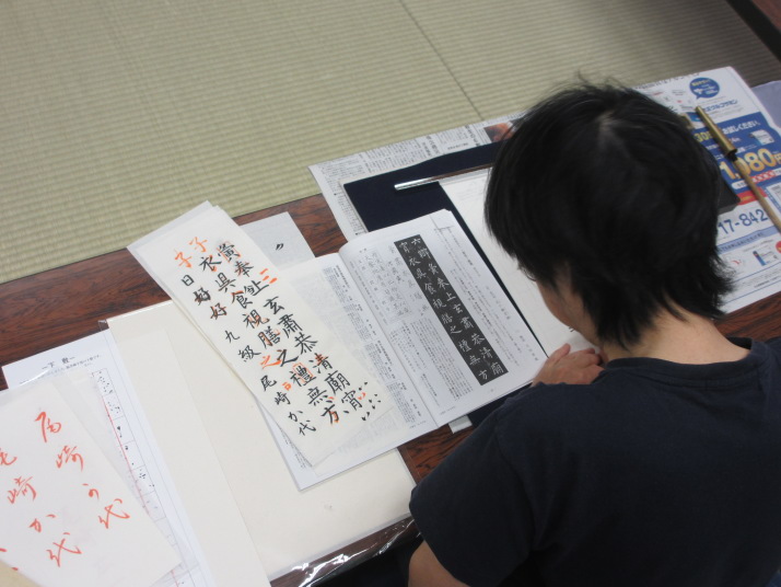 ・まず、漢字で名前の練習後、千字文を最初から練習し、その中の1枚を8文字毎に各自保管。
