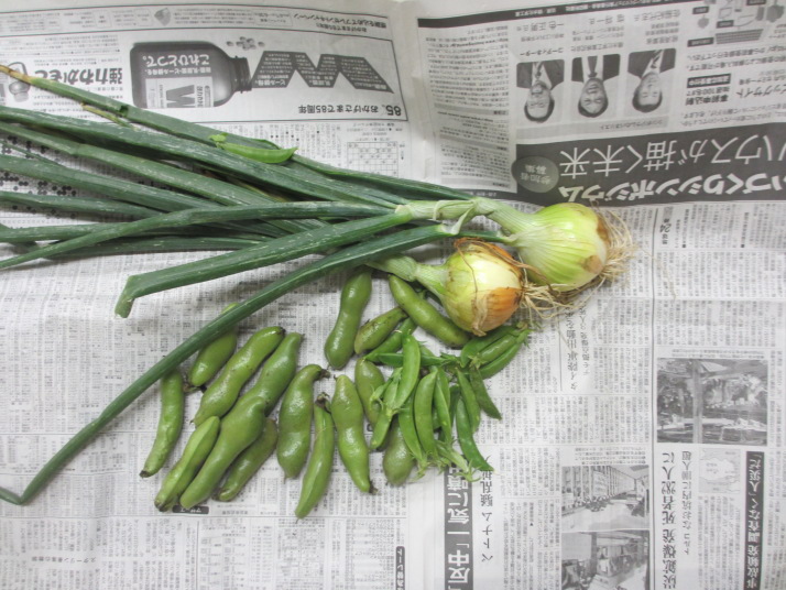 ・内藤農園からは、採りたての玉ねぎ、スナップエンドウ、そらまめ。