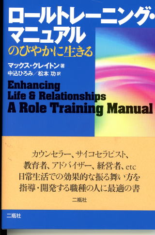 9組中込ひろみ(旧姓市川)さん と松本氏が翻訳、(2013年11月出版) 二瓶社 定価2000円 本の帯の裏面の記述より ロールトレーニングは、サイコドラマ の創始者であるモレノのやり方を 学んで、そこからマックスが独自に 開発したものである。 サイコドラマは即興劇の形式を用い たグループメソッドであるが、ロール トレーニングは、そのサイコドラマの エッセンスが凝縮され、しかも短時間 で深い気づきや体験をもたらす優れ た方法である。他のブリーフ・セラピー にもひけをとらないと思う。 -「訳者あとがき」より |