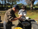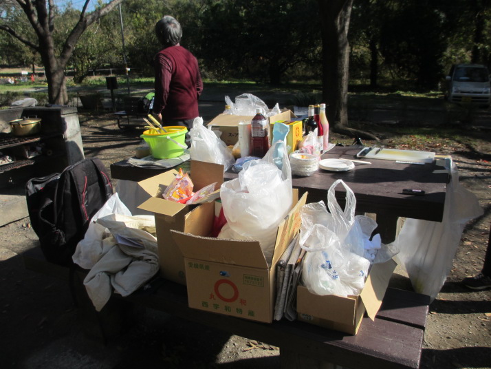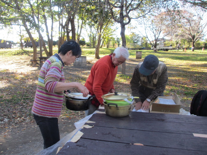 ・内藤さんは料理道具一式準備と材料収穫、調達、コンロ作りにと大忙し、下ごしらえは内藤ご夫妻が前の日に夜鍋仕事で準備。感謝・感謝