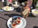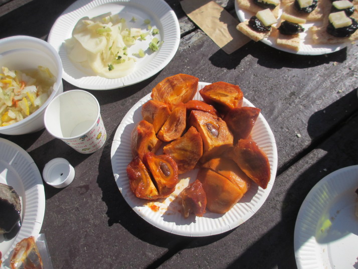 ・オードブルはプラムのチーズ乗せ、干しカレイ、あぶった茹で里芋に永平寺みそ(瀬尾さん調達)、ポテトチップに鯖節粉(瀬尾さん調達)