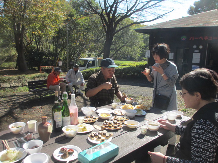 ・去年より2人少ないためか、もうお腹いっぱい。女性陣は公園内を散歩してお腹に隙間を作り、産地直売店も見て