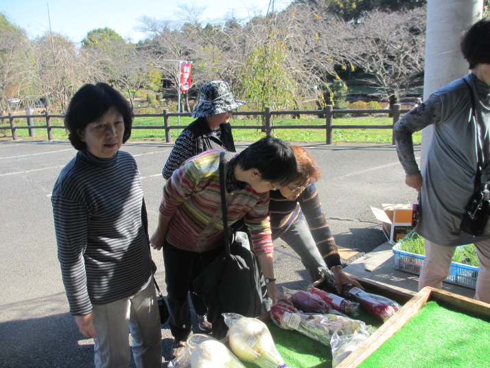 ・3時近くなると日陰はちょっと寒い。内藤農園のとれたて野菜のおみやをたっぷりいただいて、散会となりました。