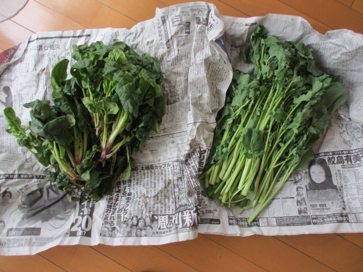 ・内藤農園からは、産地直送のホウレンソウと菜が沢山!