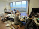 ・13:30、書道場を元に戻し、ゴミ掃除、玄関で記念写真撮影後解散。4名はプールへ、他は三浦海岸駅へ