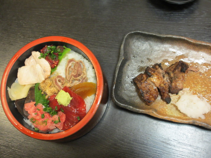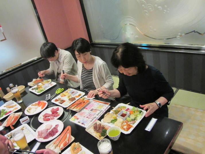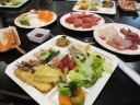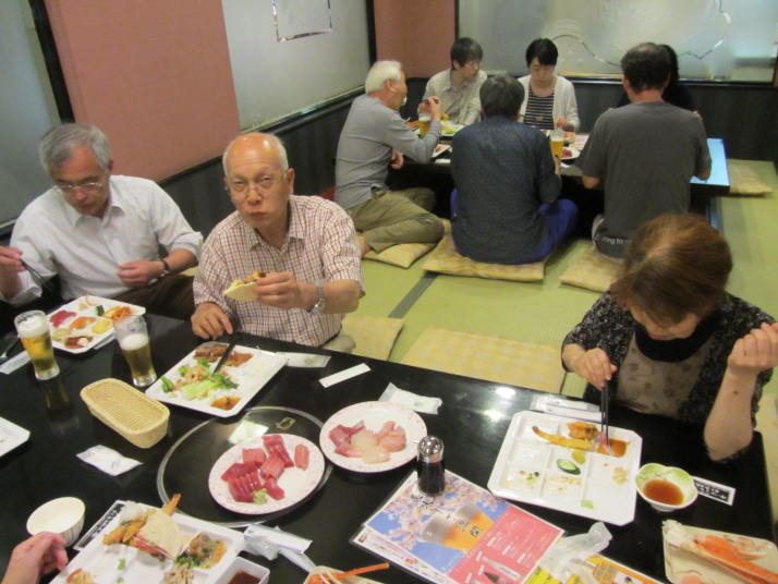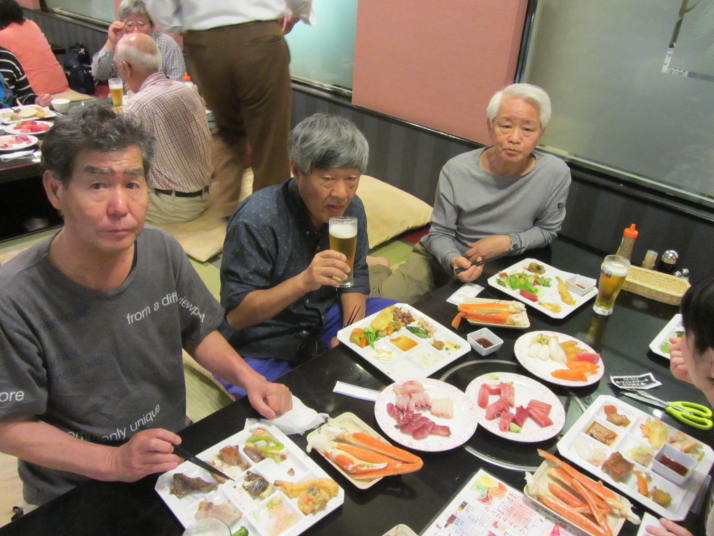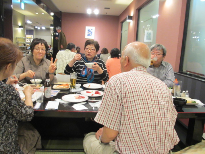・夕食のバイキングは、予定時間19:00から30分待ちとなるほど、混んでいた。宿泊客が多い。マグロを堪能。
