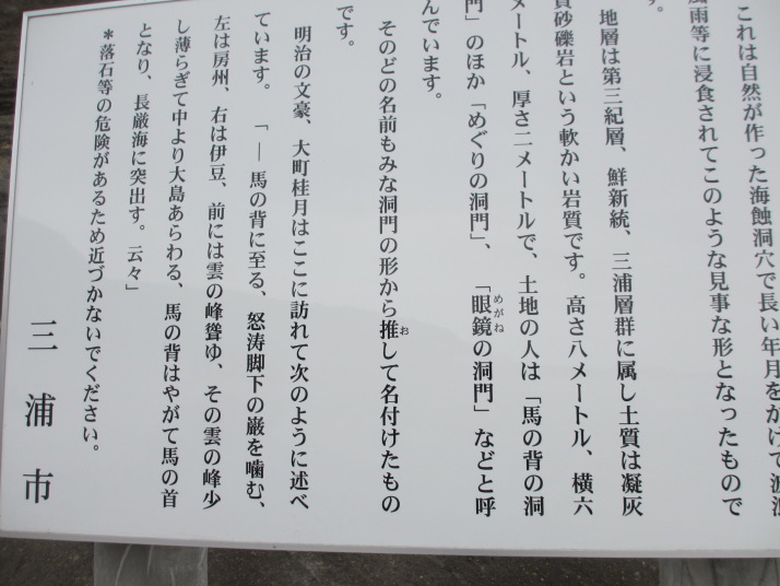 ・城ケ島の海岸に沿って歩き、馬の背洞門を見て、北原白州記念碑へ。そこからバスで三崎口へ戻る。