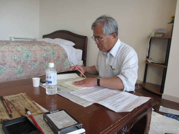 ・チェックインして、書道場を角部屋にセッティングして、入浴、スパの後、早速千字文を開始