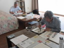 ・食後、男部屋で飲み会。ひたすら書道にはげんだ方もあり。