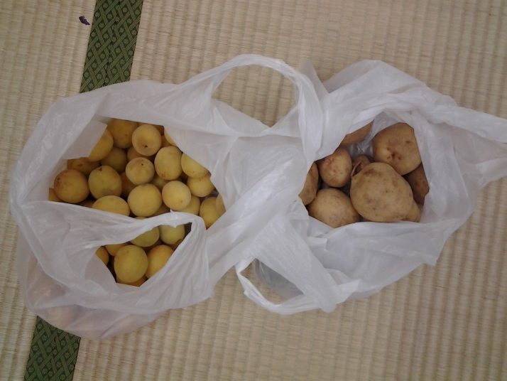 ・何時もの野菜はお詫びに、山本農園からジャガイモと梅を教室に朝届けてからニュージーランドに出発。