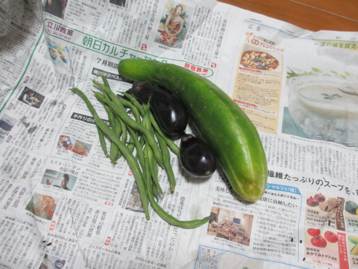 ・何時もの野菜は内藤農園からナス、キュウリ、インゲン。
