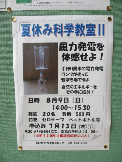 横浜市生麦地区センターで、3回目となる夏休み子供工作教室実施しました。今年も暑かった。