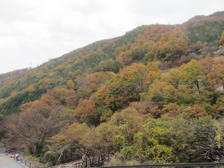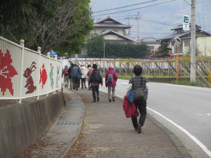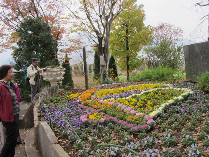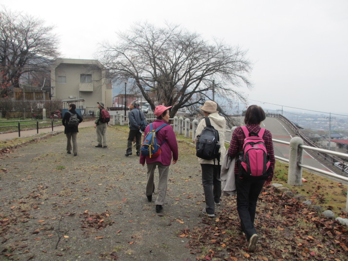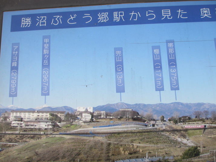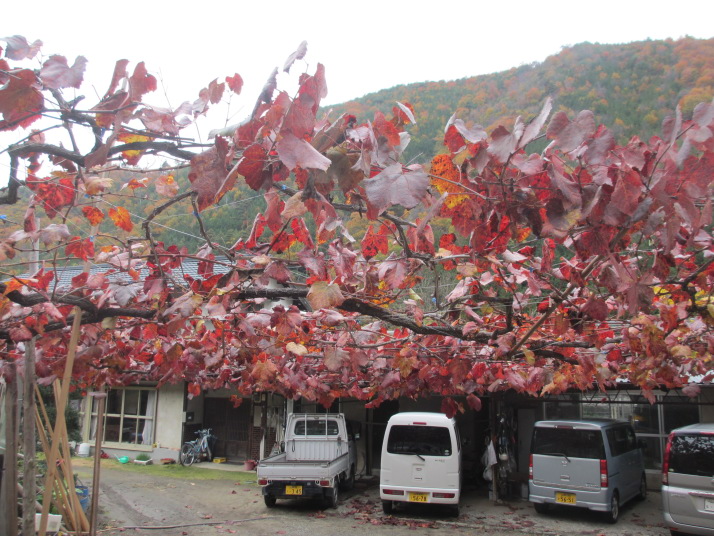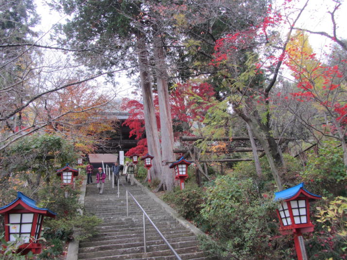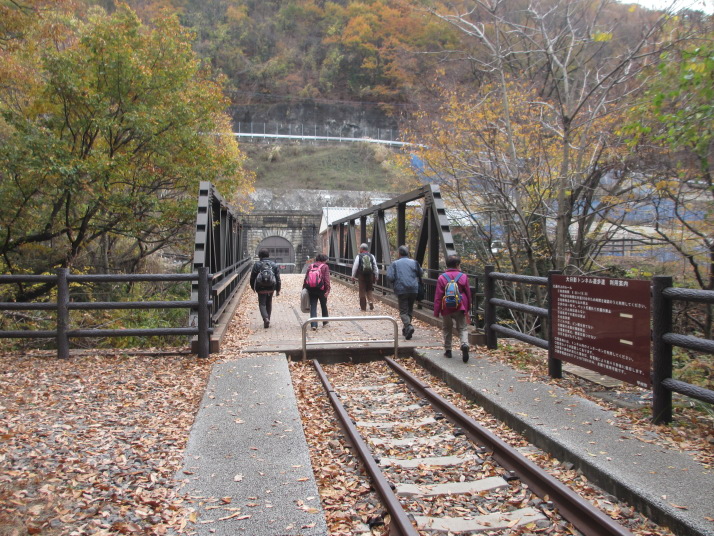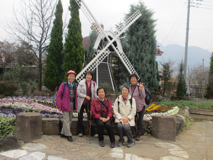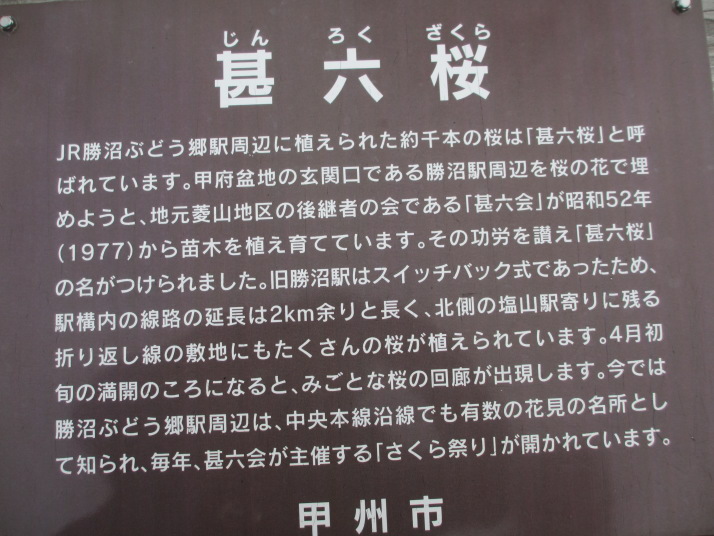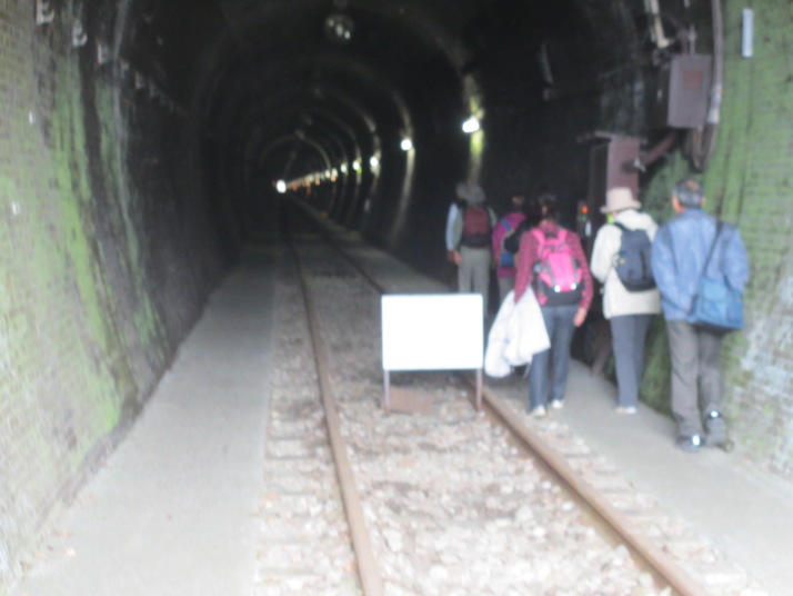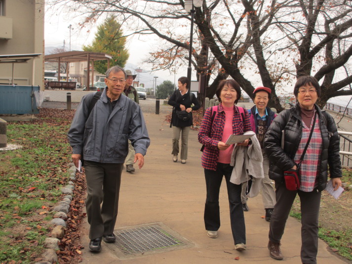 | 2015年は、晩秋のブドウ郷を散策しました。 コース概要 1. 11月23日(月・勤労感謝の日) 集合 10時(勝沼駅改札を出た所) 天気予報では夕方雨だったが、皆さんの心がけが良く。解散まで雨は無。 2.勝沼駅ハイク 歩行距離 約12.5km 駅ー展示電気機関車ー大日影トンネル1.4kmー大善寺(12:00見学終了ーハーブ園13:40―ぶどうの丘14:30ー駅 3.トンネルは開通時もので今は遊歩道。近藤勇の像(最後の戦い跡)を見て、国宝の大善寺本堂を拝観。 4.昼は勝沼中央公園で持参の食べ物で軽食 5.費用:大善寺拝観 500円、ぶどうの丘ワイン試飲 1100円、天空の風呂 610円 6.JR時間 新宿 8:30 勝沼ぶどう郷 9:56 あずさ 高尾 8:44 勝沼ぶどう郷 9:50 普通 ・歩行時間+見学時間で3時間半、13時半にぶどうの丘に到着予定でしたが、ガイドの言うことを聞かない道草おばさん、おじさんでしたので