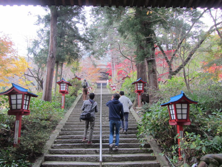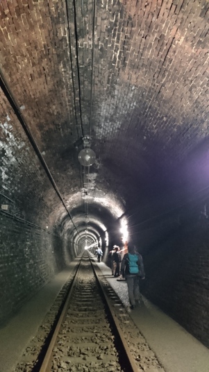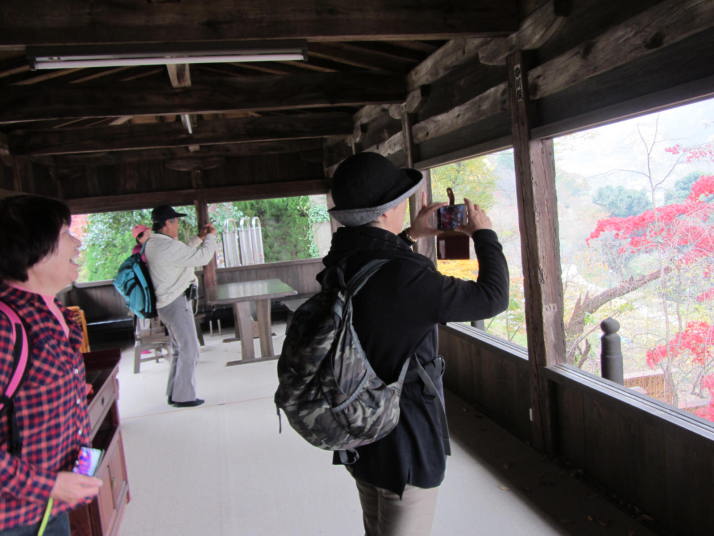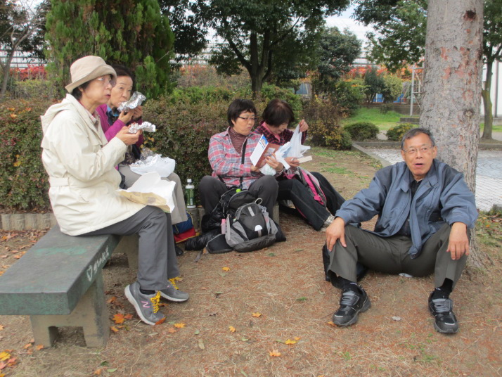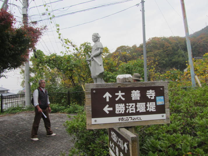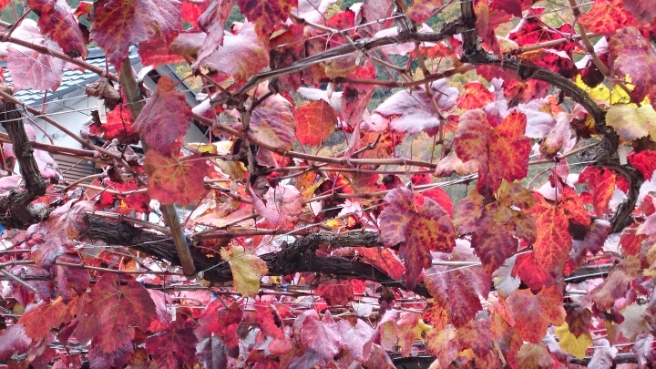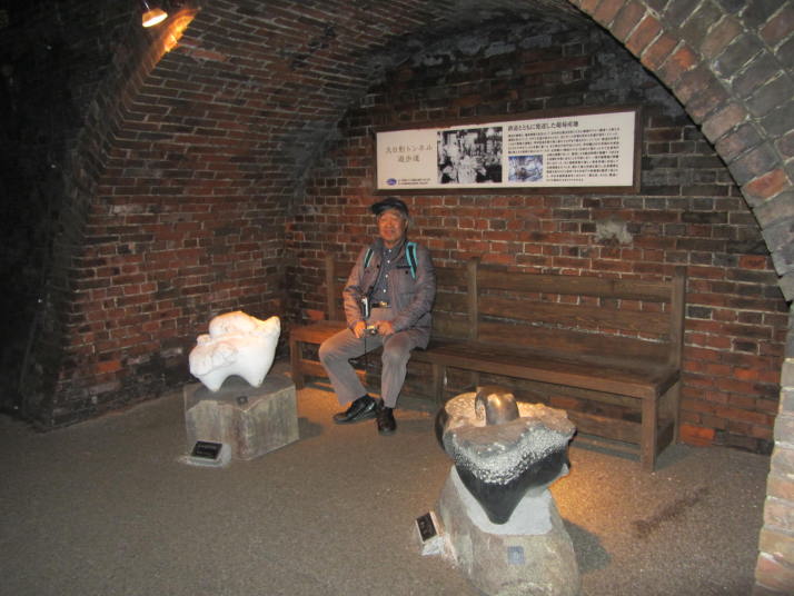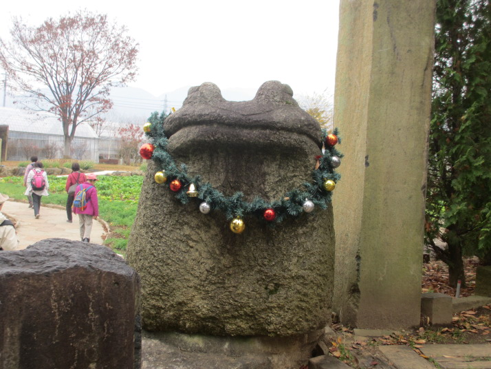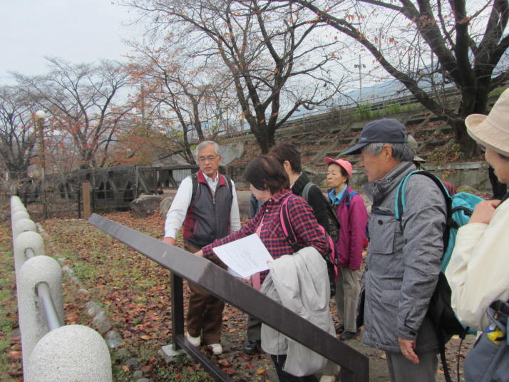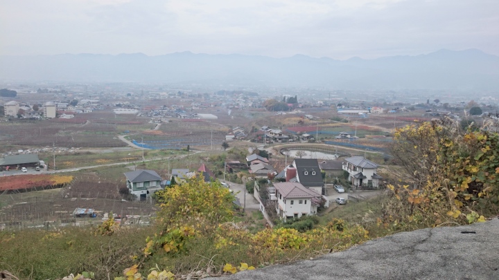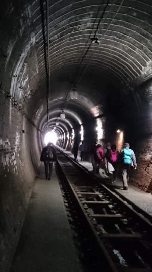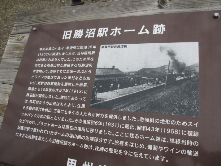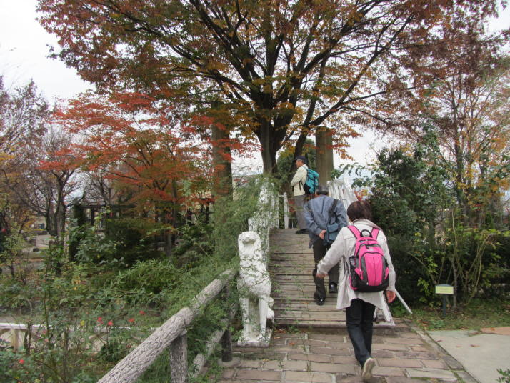 | 2015年は、晩秋のブドウ郷を散策しました。 コース概要 1. 11月23日(月・勤労感謝の日) 集合 10時(勝沼駅改札を出た所) 天気予報では夕方雨だったが、皆さんの心がけが良く。解散まで雨は無。 2.勝沼駅ハイク 歩行距離 約12.5km 駅ー展示電気機関車ー大日影トンネル1.4kmー大善寺(12:00見学終了ーハーブ園13:40―ぶどうの丘14:30ー駅 3.トンネルは開通時もので今は遊歩道。近藤勇の像(最後の戦い跡)を見て、国宝の大善寺本堂を拝観。 4.昼は勝沼中央公園で持参の食べ物で軽食 5.費用:大善寺拝観 500円、ぶどうの丘ワイン試飲 1100円、天空の風呂 610円 6.JR時間 新宿 8:30 勝沼ぶどう郷 9:56 あずさ 高尾 8:44 勝沼ぶどう郷 9:50 普通 ・歩行時間+見学時間で3時間半、13時半にぶどうの丘に到着予定でしたが、ガイドの言うことを聞かない道草おばさん、おじさんでしたので