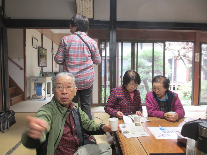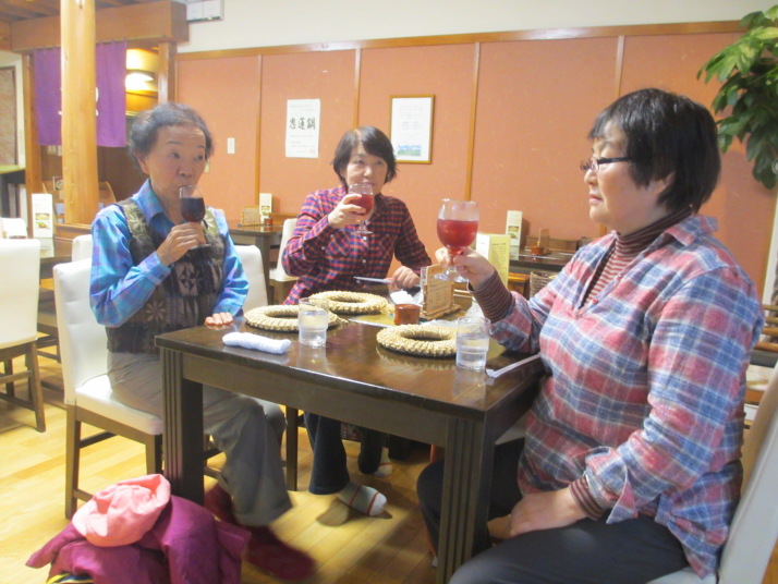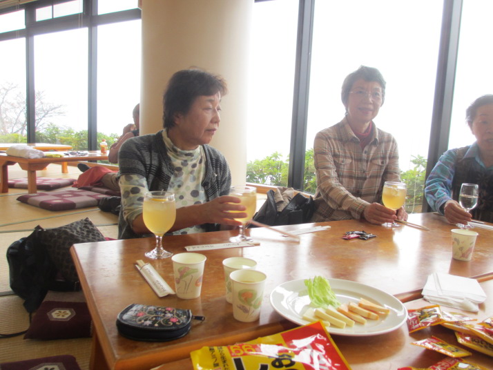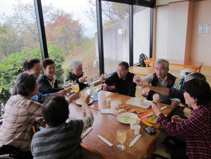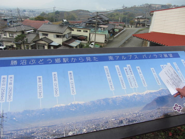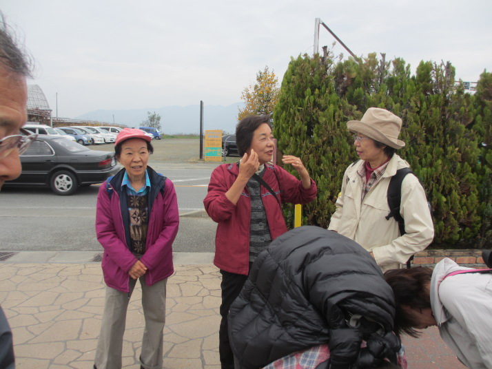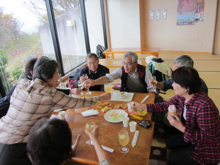 14:30にやっと、ぶどうの丘に着きました。 ・参加者名簿記入漏れ、朝の勝沼駅では一便遅れた人を置いてけぼりにするところだったとか、詰めの甘い幹事でした。