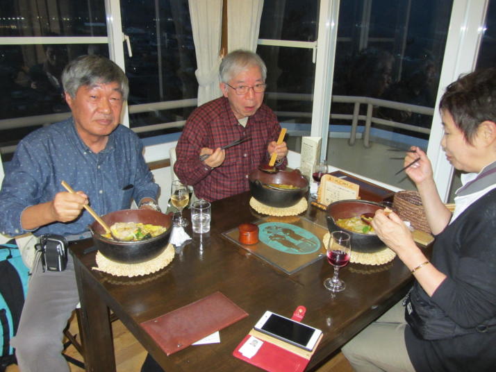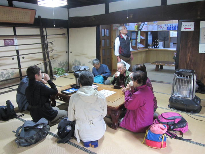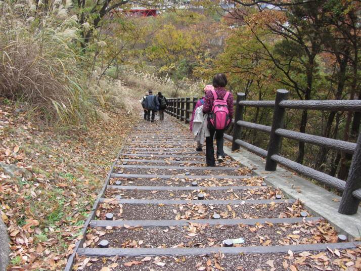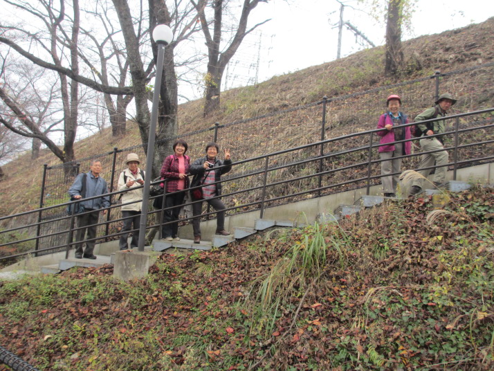 ・武井さんのGPSロガーで記録した、歩行ルートとその標高推移の図を下に掲載しました。・天空の湯に入り露天風呂から甲府盆地を一望。 休憩所でワイン他で乾杯、伊藤さん持参の枯露柿、佐々木さんのフルーツなどいただき 16時過ぎに解散 ・お土産など買ったあと6名は思蓮でホウトウ・ワインを満喫、駅までの最終バスに乗り遅れ、懐中電灯頼りに 強行遠足を思い出しながら、夜道を駅まで歩きました。 甲府方面はの電車は目の前で発車(次は45分後)、東京方面は5分後臨時特急で楽々座れました。 ワインカーブで試飲した人はいませんでした。 参加者 ガイド: 手塚彰夫 7組 甲斐市 サポータ:深澤 克 3組 練馬区 男性 山本秀彦 5組 品川区 武井 勉 8組 相模原市、 女性: 伊藤千永子(雨宮)6組 甲府市 向山節子(大木) 6組 甲州市 梶 圭子(金原) 12組 木更津市、 高木悦子(木原) 12組 横浜市 中島洋子 12組 甲府市 佐々木さん(深澤氏登山の友人) |
