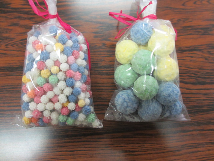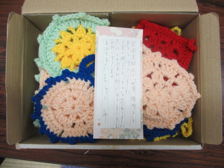 ・小針さんから、アクリル毛糸の手編みたわをし、師匠からは小筆、文鎮、筆置きなどのお年玉をいただきました。